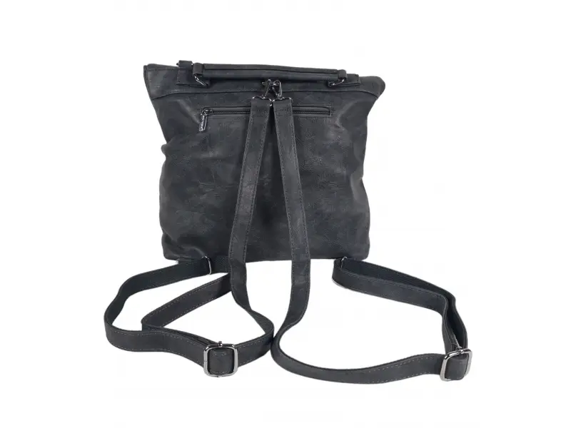 Дамска раница с удобно разпределение - Дамска раница от еко кожа. - Едно голямо отделение с цип и магнитно закопчаване. - Малко вътрешно джобче с цип. - Отделение за телефон и ключове. - Преден джоб с цип. - Два предни джоба с магнитно закопчаване. - Заден джоб с цип. - Удобна дръжка за носене. - Регулиращи се презрамки.