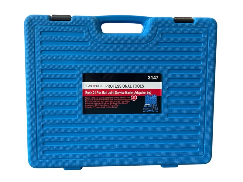 Професионален комплект от 21 части за монтаж и демонтаж на шарнири, тампони и лагери. Идеален за автосервизи, мобилни механици и ентусиасти, търсещи ефективност и универсалност в ремонта.