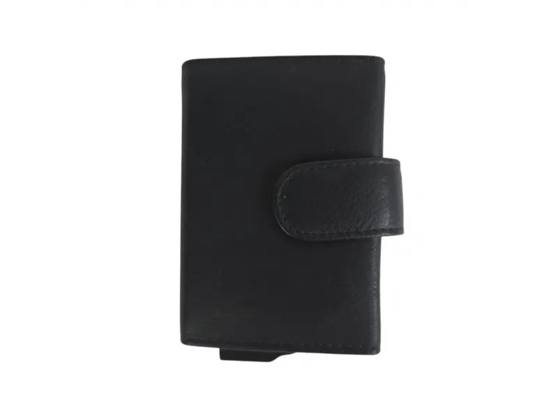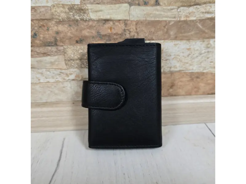 Стилен автоматичен държач за карти - Автоматичен държач за карти от естествена кожа. - Алуминиева сплав с автоматично изваждане на карти. - Отделение за карти и лични документи. - Заден джоб с цип.