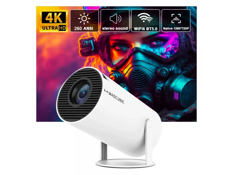• 4K поддръжка: Със способността да възпроизвежда 4K съдържание, този проектор осигурява визуално изживяване, което не отстъпва на големите телевизори и кино екрани.
