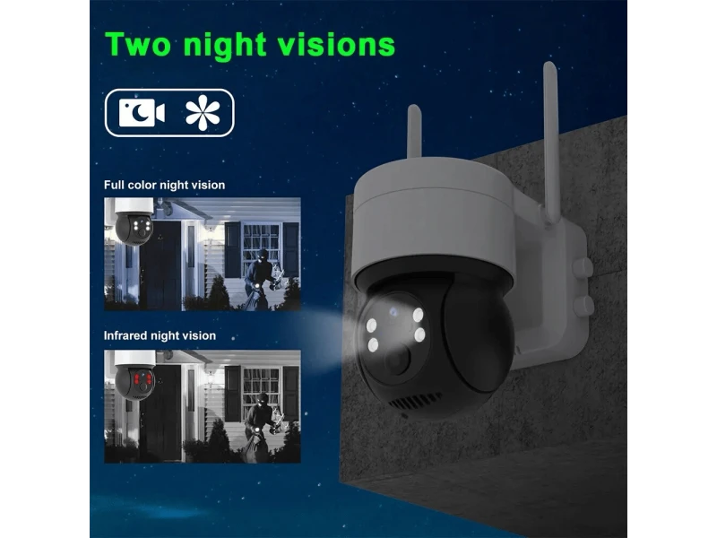 • Нощно виждане: Цветно нощно виждане с 12 бели светлини и 12 инфрачервени светлини, осигуряващи кристално ясна картина дори в тъмни условия.