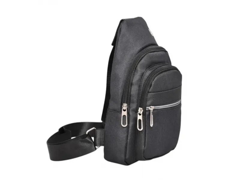 Спортна мъжка чанта за през гърди - Мъжка чанта, която може да се носи през гърди, рамо или гръб тип раница. - Едно основно отделение с цип. - Вътрешен джоб с цип. - Два предни джоба с цип. - Преден джоб без цип. - Регулираща се презрамка.