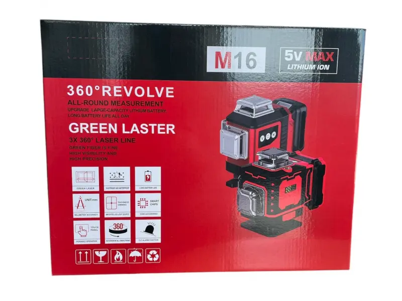 Открийте предимствата на строителния лазер KraftRoyal M16 с 360° въртене и 16 зелени линии! Идеален за прецизни измервания и проекти, той разполага с удобен LCD дисплей за лесна употреба. Подобрете работата си и постигнете перфектни резултати! 🌟 Поръчайте сега и направете следващия си проект още по-успешен!