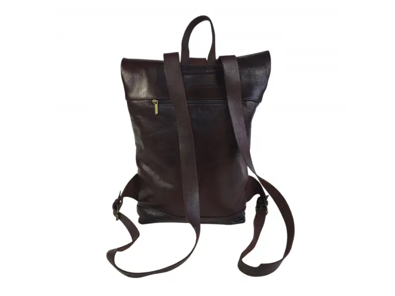 Тъмно кафява раница от висококачествена естествена кожа. Голяма раница с удобно разпределение и презрамки. Кожена раница произведена в Мароко.