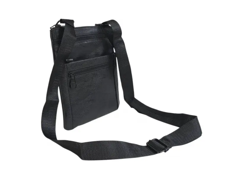 Висококачествена мъжка чанта от изкуствена кожа. Черна мъжка чанта в кампактен размер с удобни отделения за всичко необходимо. Тънка чанта с удобна регулираща се дръжка.