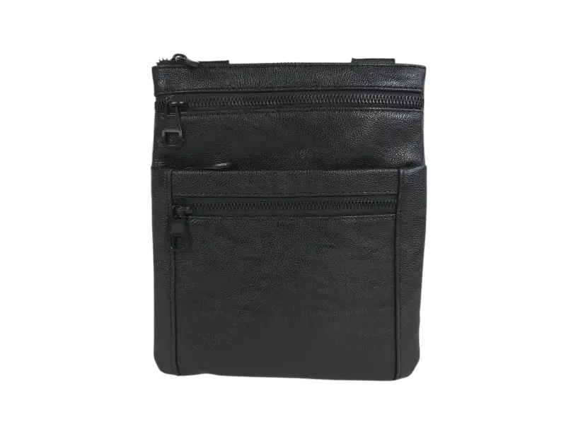 Компактна мъжка чанта за през рамо - Мъжка чанта от еко кожа. - Едно основно отделение с цип. - Три предни джоба с цип. - Заден джоб с цип. - Дълга, регулираща се дръжка.