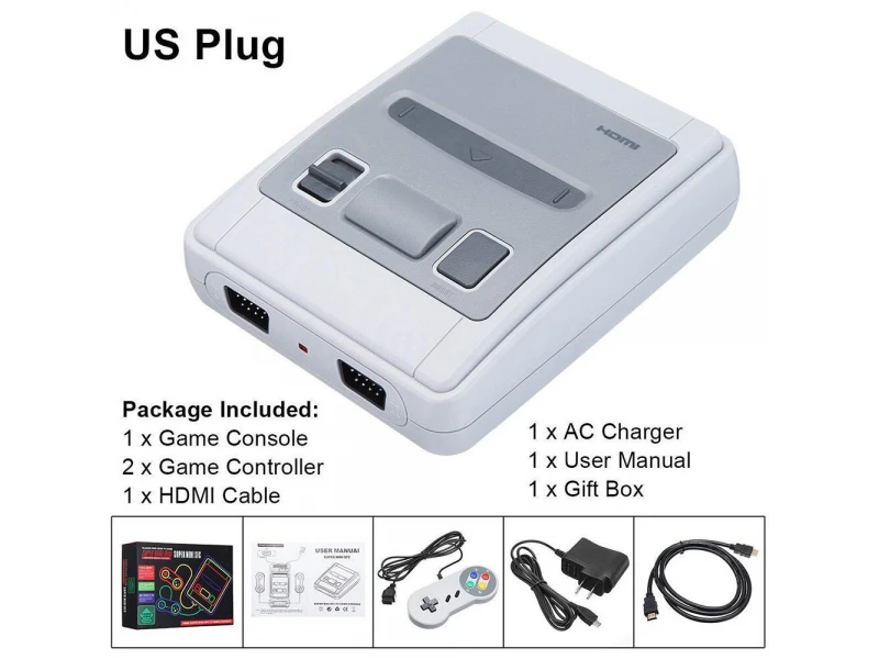 Super Mini SFC хвърля носталгичен поглед към 90-те години на миналия век.Конзолата идва сега с 620 инсталирани игри, като няма възможност да поддържа други. Въпреки малкия си размер, обаче, имаш достатъчно място за сейв-ове, и Super minii SFC обещават, че ще можеш да продължиш от там, от където си спрял последния път.Вече няма да се притесняваш от качеството на картината защото играта е с HDMI.Част от Игрите са: 1.Супер Марио2.Tanks3.Монополи4.Basketball 5.Angry Birds6.Clay shotting7.Battle city 8.PacMan9. Doom10.Donkey Kong12.Skeet shooting 13.Prince of Persia14.Мортал Комбат15.Soccer (Футбол)16.Contra+ още 600 игриКомплекта съдържа:1 х Конзола - Super Mini SFC2 х Мултифункционални джойстици за игра - 2 броя1 х HDMI за Включване към телевизор или монитор1 х Адаптер 220V за захранване