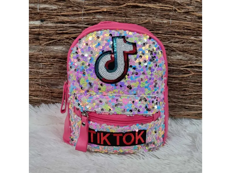 Интересна детска раница - Tik Tok в цикламен цвят с цветни пайети. Детска раница с едно голямо отделение и малък преден джоб затварящи се с цип. Раница с регулиращи се презрамки и дръжка за носене.