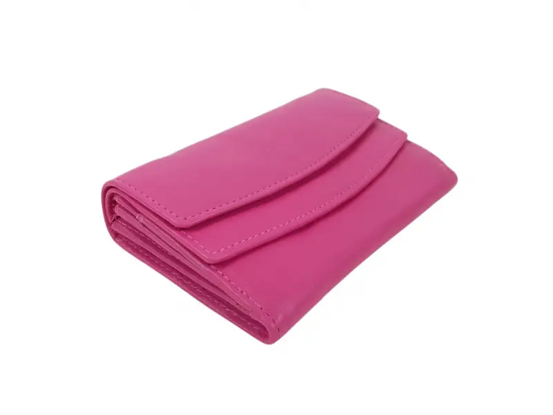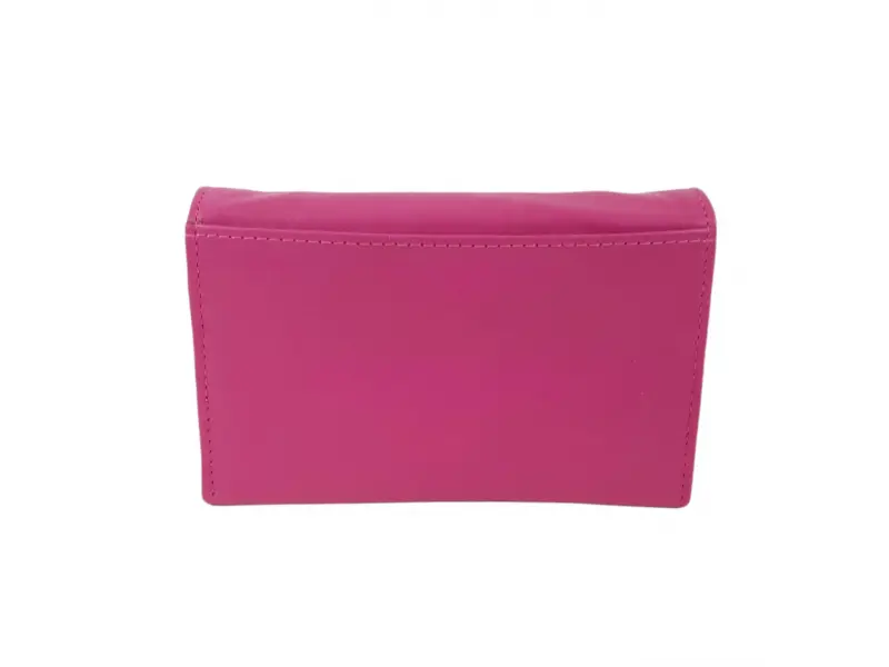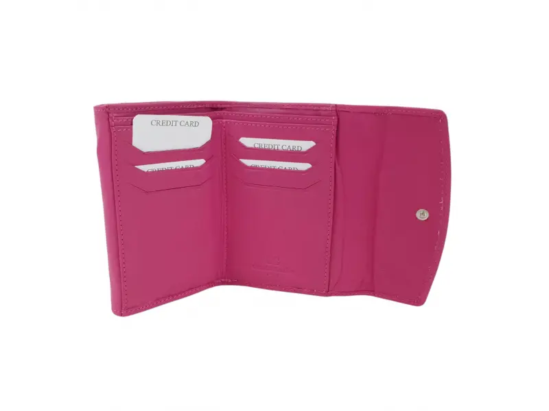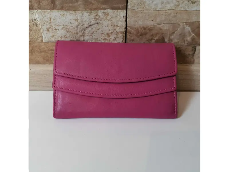 Качествено дамско портмоне Голямо дамско портмоне от мека на допир естествена кожа. Цикламено дамско портмоне с преграда за банкноти, слотове за карти и документи, монетник с преграда и с цип, задно отделение.