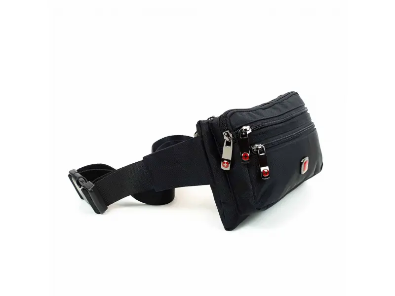 Качествена мъжка чанта за през кръста с две големи отделения, малко вътрешно джобче с цип и два предни джоба затварящи се със здрави ципове. Мъжка чанта тип паласка с регулиращ се колан от полиестер.