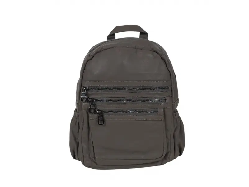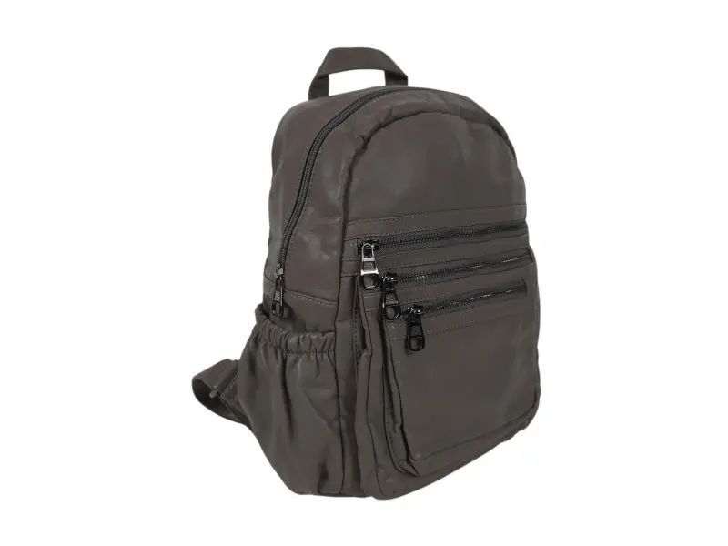 Качествена дамска раница - Дамска раница от варена кожа. - Едно голямо отделение с цип. - Вътрешен джоб с цип. - Отделение за телефон и документи. - Три предни джоба с цип. - Два странични джоба. - Дръжка за носене в ръка. - Регулиращи се презрамки.