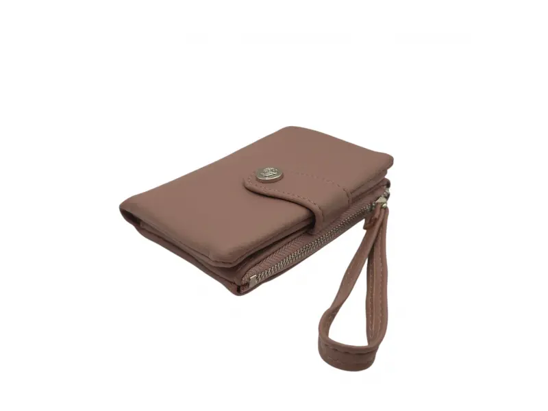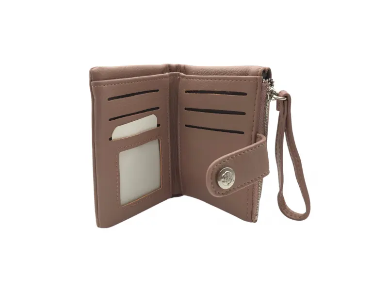 Удобно дамско портмоне - Дамско портмоне от еко кожа. - Закопчаване с копче тик-так. - Отделения за карти. - Отделение за банкноти. - Джоб за монети с цип.