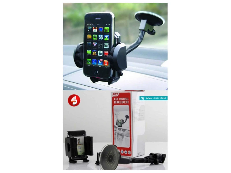 Универсална стойка за автомобил с регулираща се ширина на захвата, с меки тампони на страните за по здрав захват на телефона към стойката. Закрепя се на предният прозорец на колата чрез вакуум с механичен ключ. (издържа до 4,5 кг.) Лек и ергономичен дизайн. Регулиране във всички посоки с дълго рамо. Може да се използва и за антирадари.