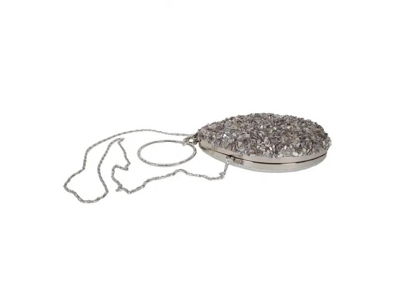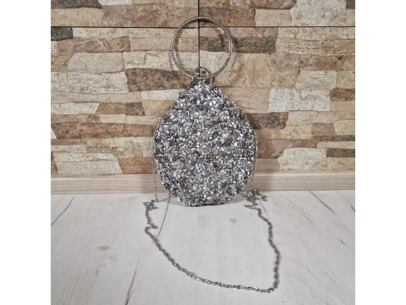 Абитуриентска чанта с интересен дизайн - Официална дамска чанта с едно отделение. - Отваряне и затваряне с механизъм. - Сребърен кант. - Дръжка за носене в ръка. - Дълга дръжка тип верижка.