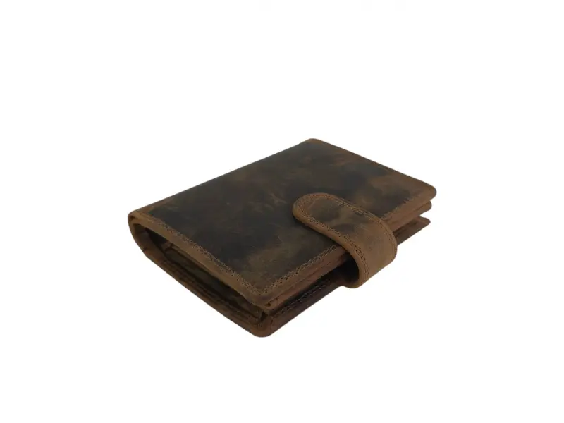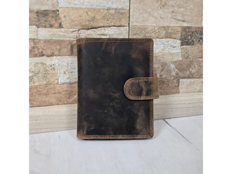 Висококачествен мъжки портфейл от естествена хънтер кожа. Мъжки портфейл с удобно разпределение за банкноти, карти и лични документи и монети. Мъжки портфейл със закопчалка.