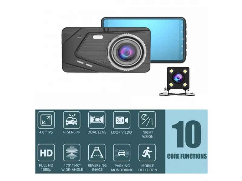 Представяме Ви DVR Видеорегистратор Full HD 1080P – иновативно решение за безопасност и сигурност по време на шофиране. С този видеорегистратор ще уловите всеки детайл от пътя, благодарение на двойната камера и широкия 170° ъгъл на заснемане. В комплект получавате и камера за задно виждане, която се монтира лесно и бързо.