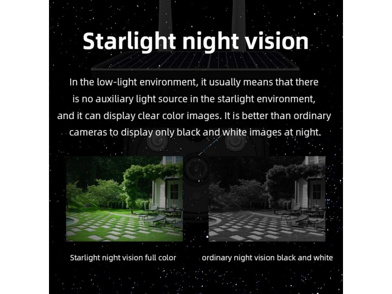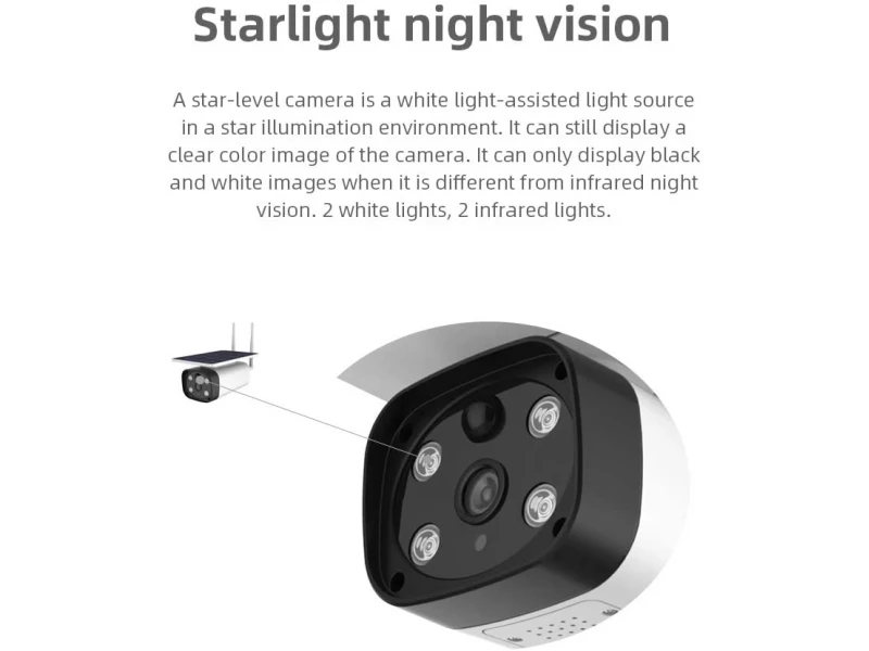 Водоустойчива камера със соларен панел Low power starlight full cover solar camera
