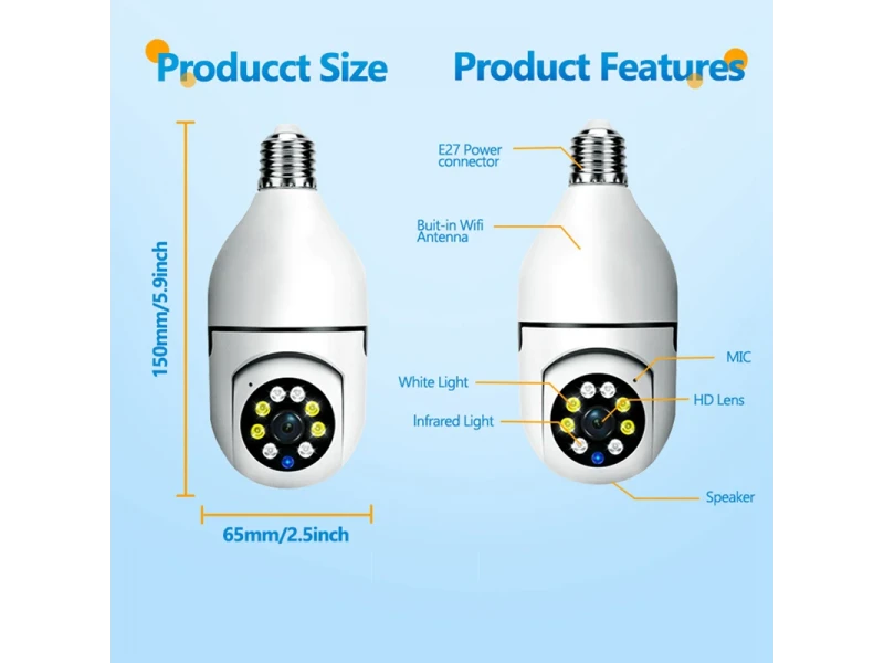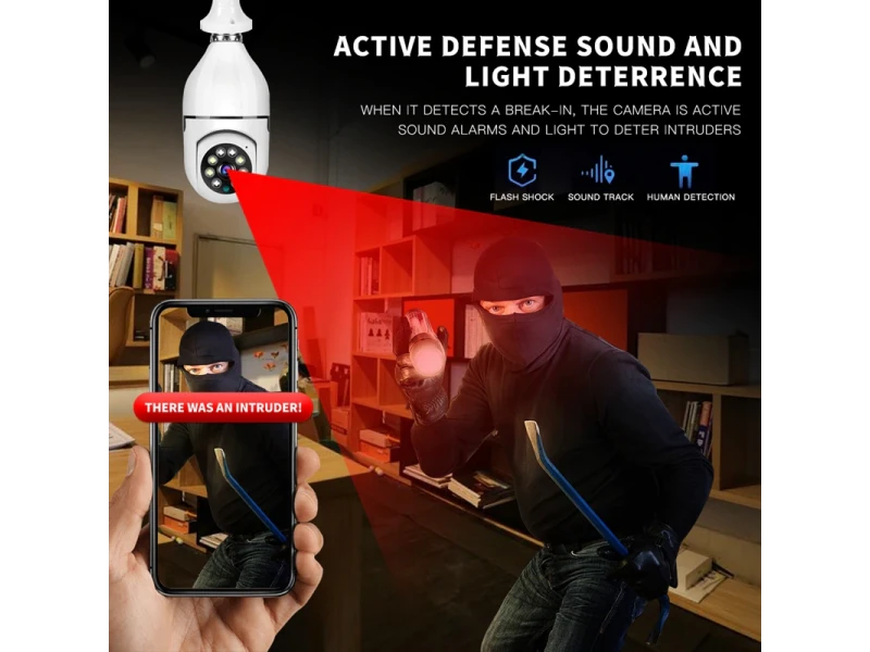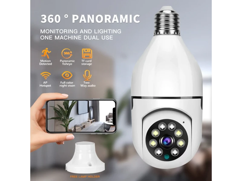 Иновативна Куполна камера тип крушка с ъгъл на видимост 360° и вграден микрофон е идеален продукт за скрито видеонаблюдение,наблюдение на дома,офиса или търговски обекти.Куполна камера тип крушка работи в дневен и нощен режим, което я прави