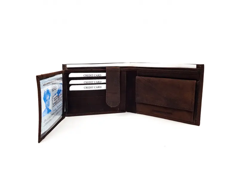 Здрав мъжки портфейл - набук. Много здрав мъжки портфейл от естествена кожа. Ръчна обработка кафяв портфейл с удобно разпределение от ePazar.bg.