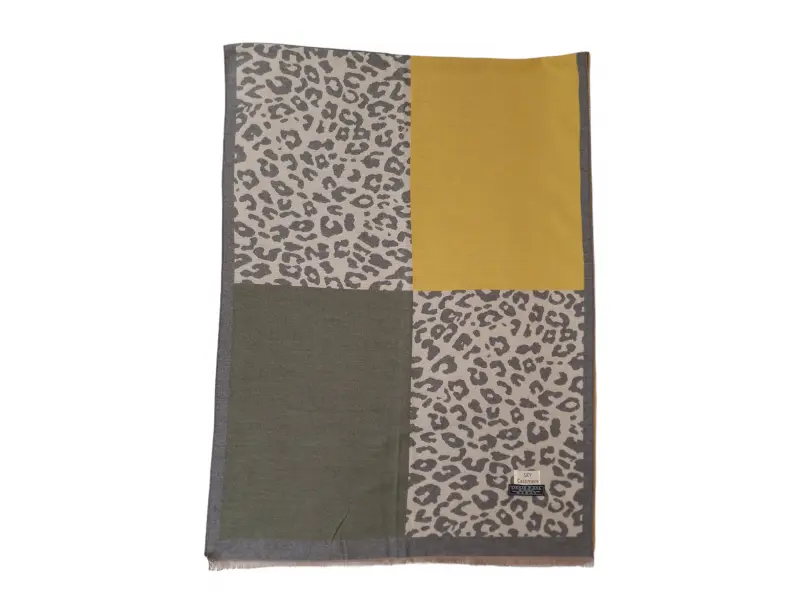 Дизайнът на шала е с мотив котешка стъпка, което добавя стилен и модерен акцент.