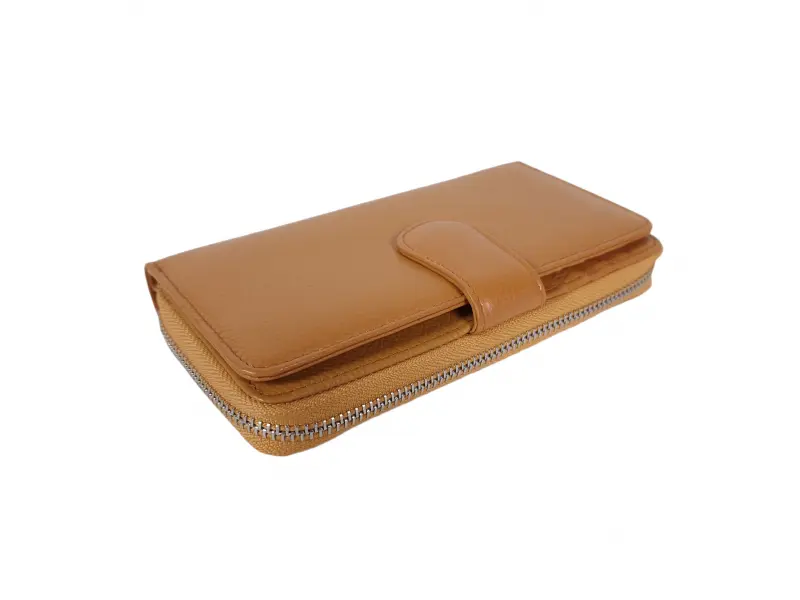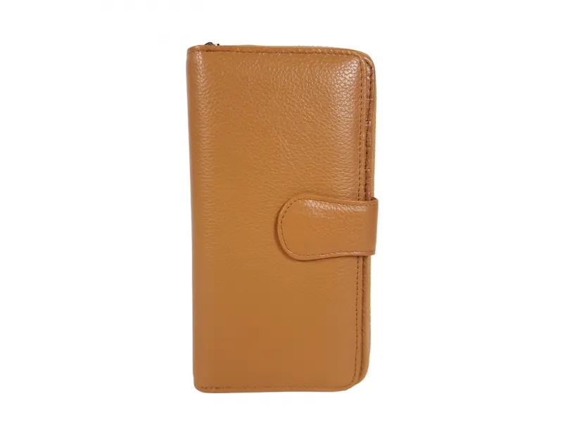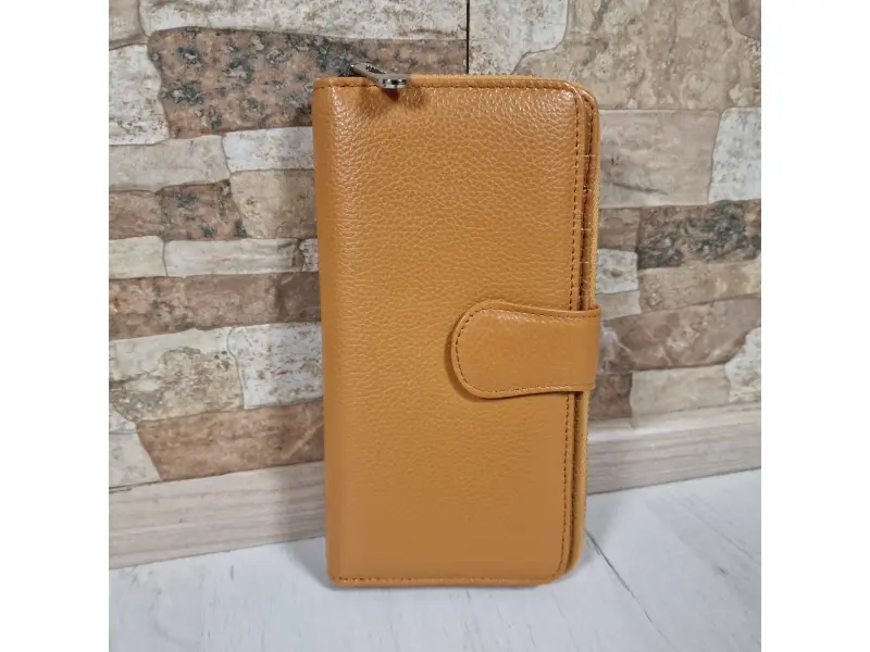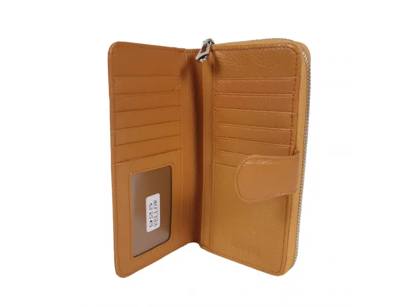 Жълто голямо портмоне с много слотове - Дамско портмоне от естествена кожа. - Закопчаване с цип и копче тик-так. - Много отделения за карти. - Отделения за банкноти. - Вътрешен монетник с цип.