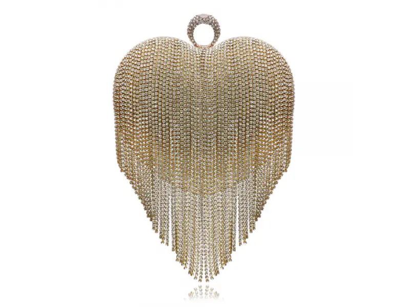 Чантата е в модерна форма на сърце с златен кант, което я прави подходяща за официални събития.