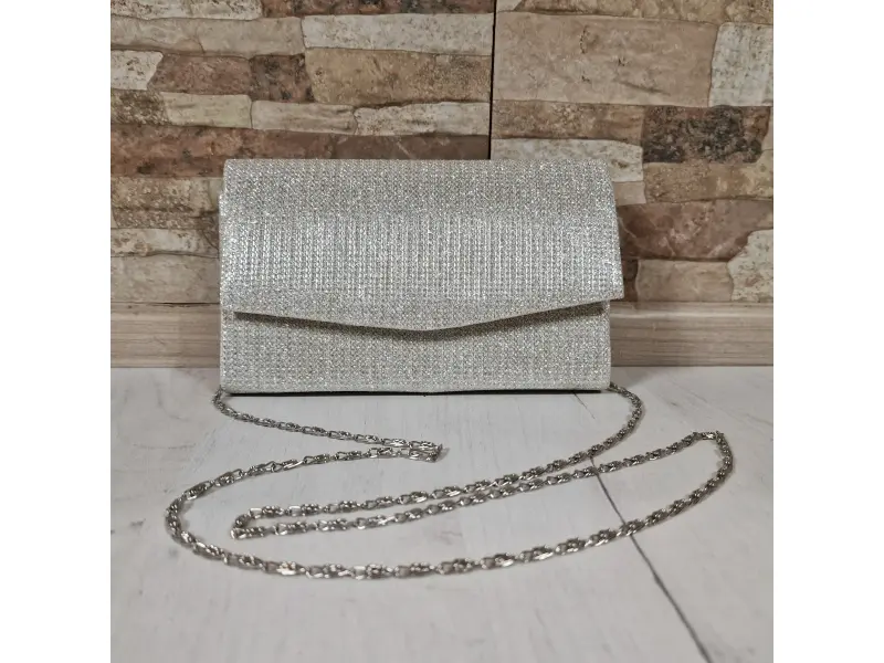 Златна вечерна чанта - Официална дамска чанта с едно отделение. - Отваряне и затваряне с копче тип магнит. - Дълга дръжка тип верижка в сребърен цвят.