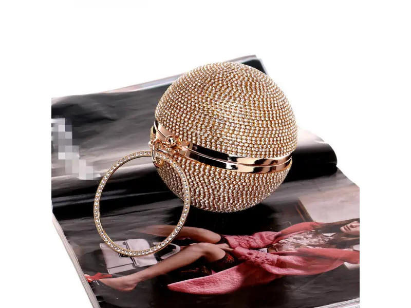 Абитуриентска чанта във форма на сфера - Официална дамска чанта с едно отделение. - Отваряне и затваряне с механизъм. - Златен кант. - Дръжка за носене в ръка. - Дълга дръжка тип верижка.